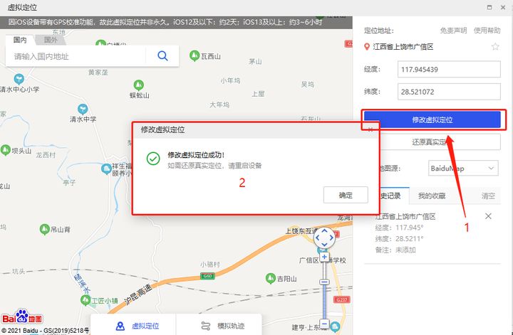 3.将参数填入【爱思助手虚拟定位】中完成修改,这样手机就完成定位了。