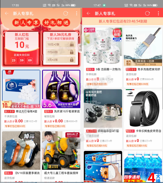 开启了全场0元购活动